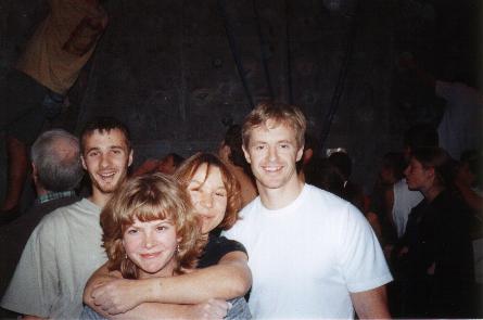 Mark, Louise, Sarah and Eddie preparing themselves for the southern indoor bouldering league 2nd round at Salfords climbing wall |
