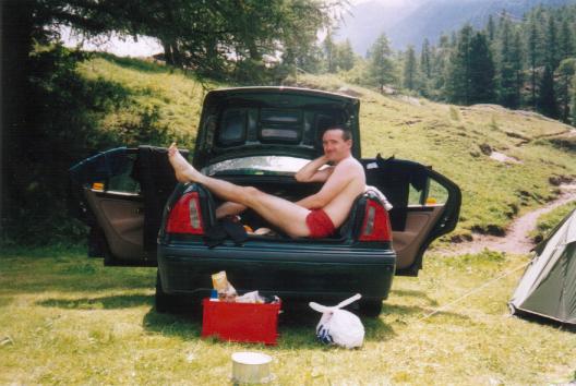 All man and half sex God, but which half? Trevor showing what he is made of in an alpine glade. |