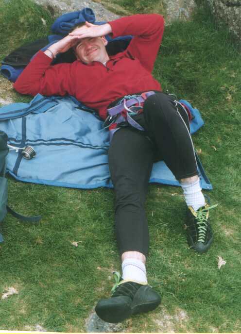 A man at one with himself Trev showing his true climbing ability by thoughly warming up before a climb |
